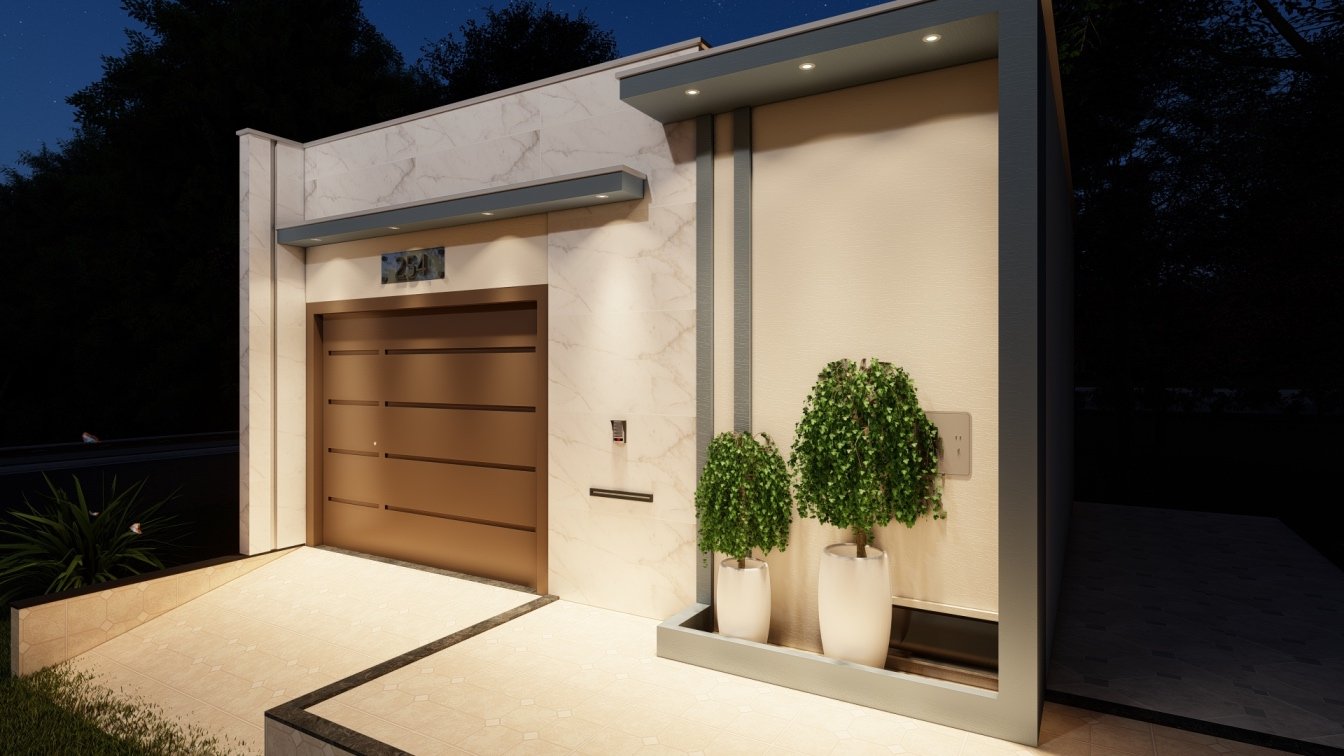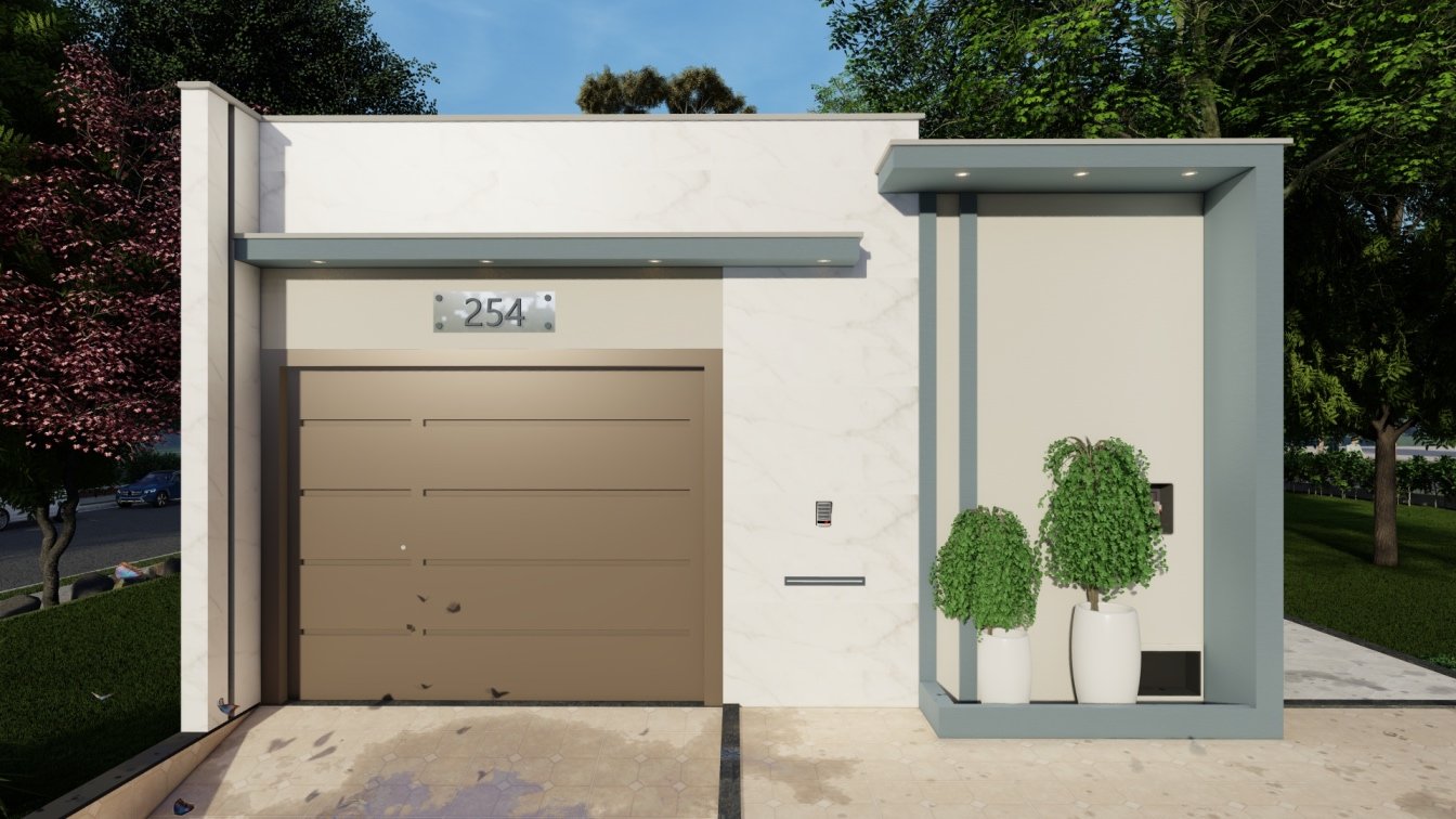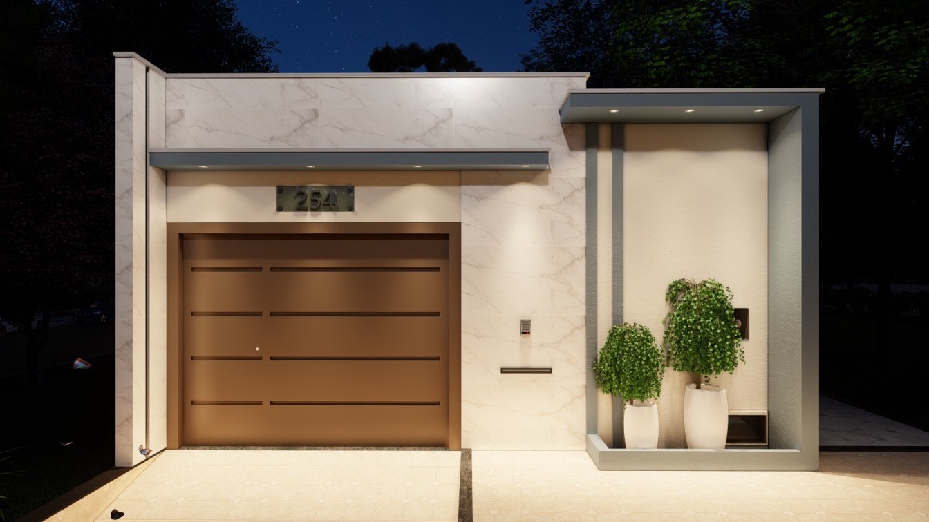 A fachada desta residência foi cuidadosamente requalificada para trazer uma nova identidade, priorizando um design moderno, aconchegante e visualmente marcante. A escolha da cor de destaque realça ainda mais a personalidade do projeto. Como parte da reforma, o muro foi elevado para reforçar a segurança, essencial para uma propriedade de esquina, garantindo privacidade e tranquilidade aos moradores. O resultado é uma fachada que une beleza, funcionalidade e proteção, tornando o ambiente ainda mais acolhedor e seguro.